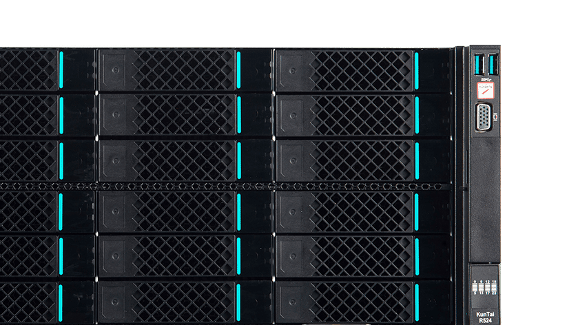 KunTai R524 存储型服务器是谈球吧数码基于鲲鹏处理器推出的新一代 ARM数据中心服务器。。。。主要面向存储业务,,,,具有海量存储、、、高性能、、、、低功耗以及易扩展的特点,,,,适合为大数据分析、、、、软件定义存 储等应用场景的工作负载进行髙效加速。。。